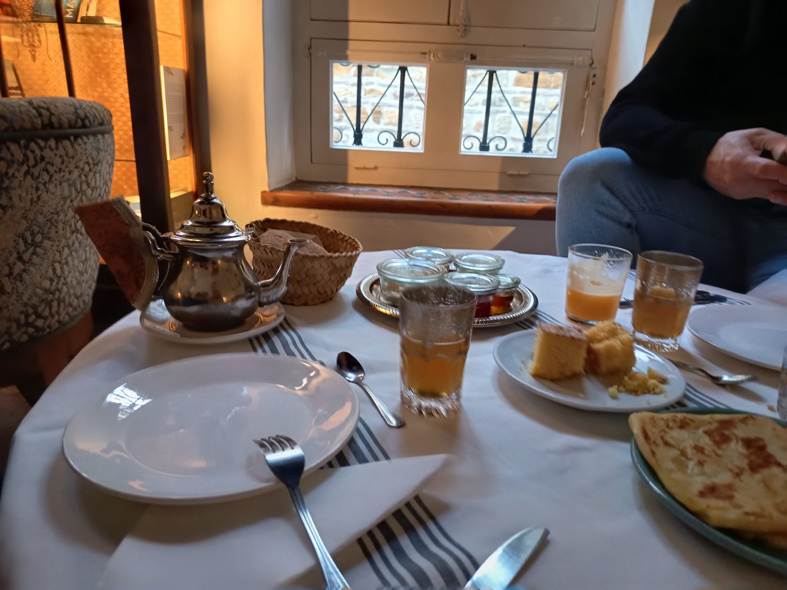El desayuno es la comida del día que más me gusta. Para saber si un hotel merece la pena, en mi baremo personal, el 50% de la nota la tendría el desayuno y en este caso el Hotel la Tangerina en Tanger tiene un 10. El desayuno no es solo la comida, es el lugar donde lo tomas, la vajilla, las personas que te lo sirven, la ceremonia de empezar el día.