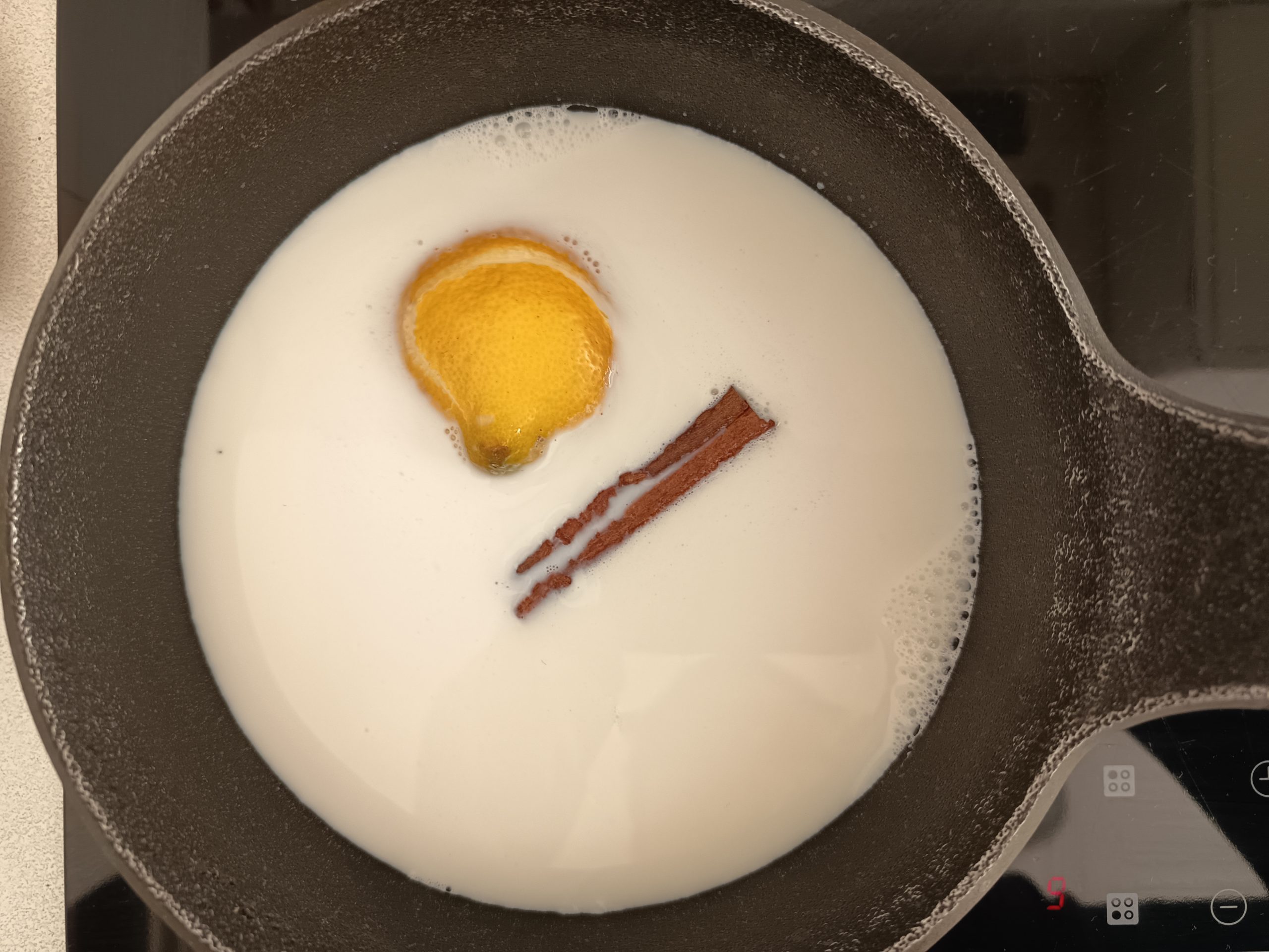 • Se pone este cazo al fuego y cuando está empezando a hervir se retira y se deja reposar 10 minutos para que la leche se infusione bien con la canela y el limón