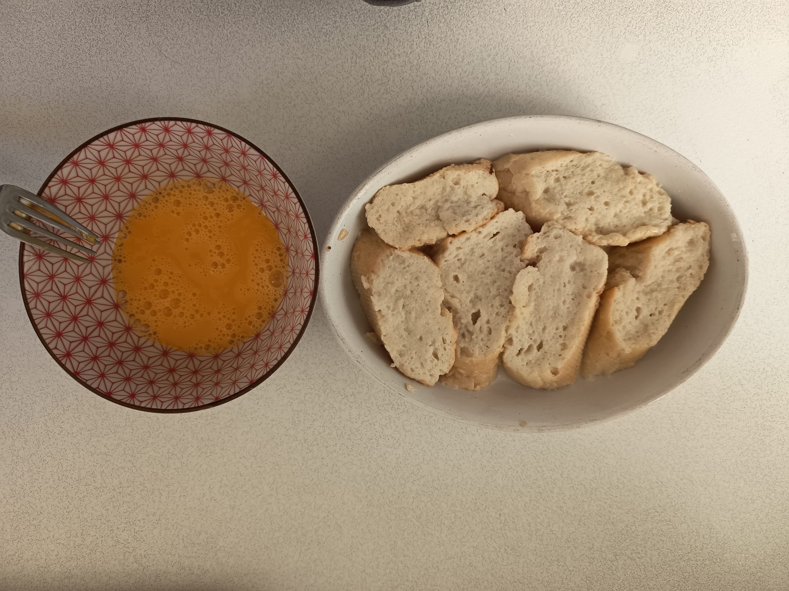 • batimos el huevo en un plato y pasamos cada rebanada por el huevo