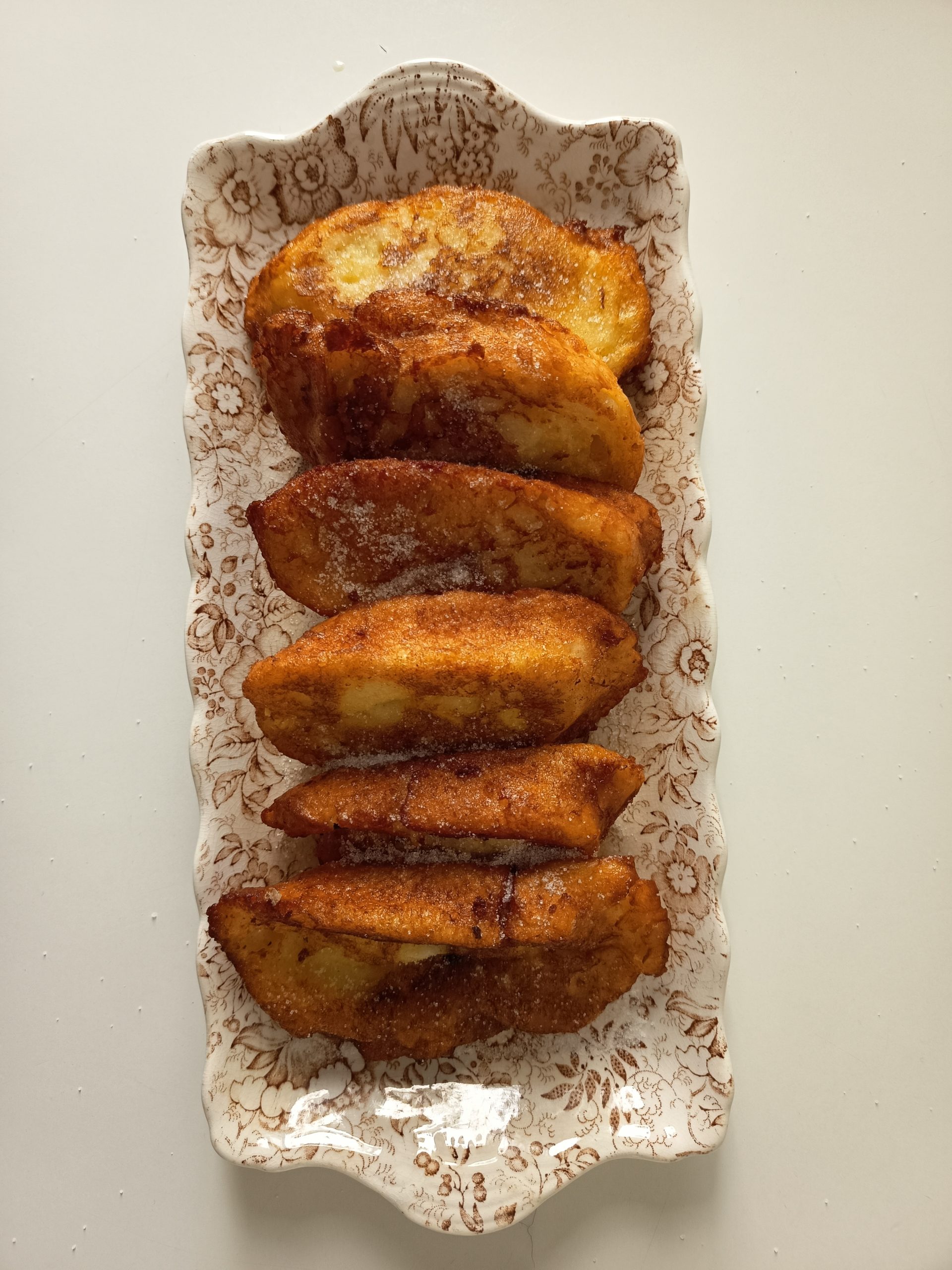 • ponemos una sartén con bastante aceite y cuando esté caliente freímos las rebanadas