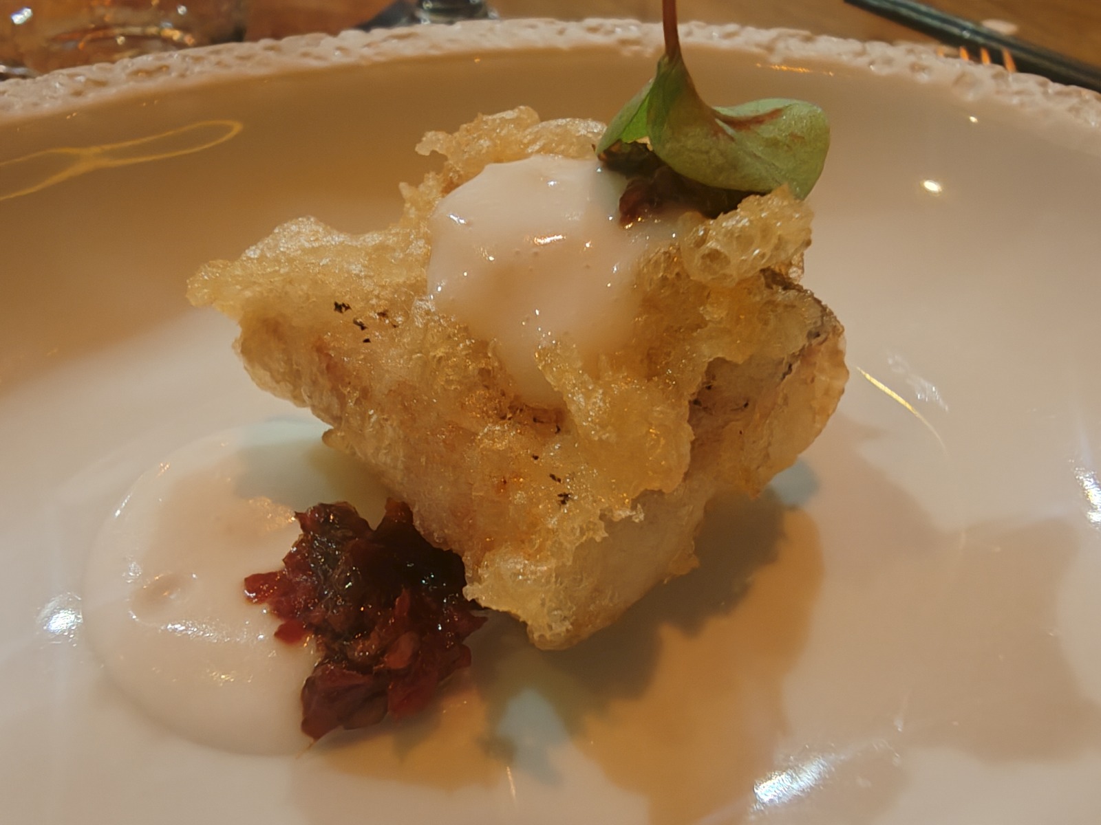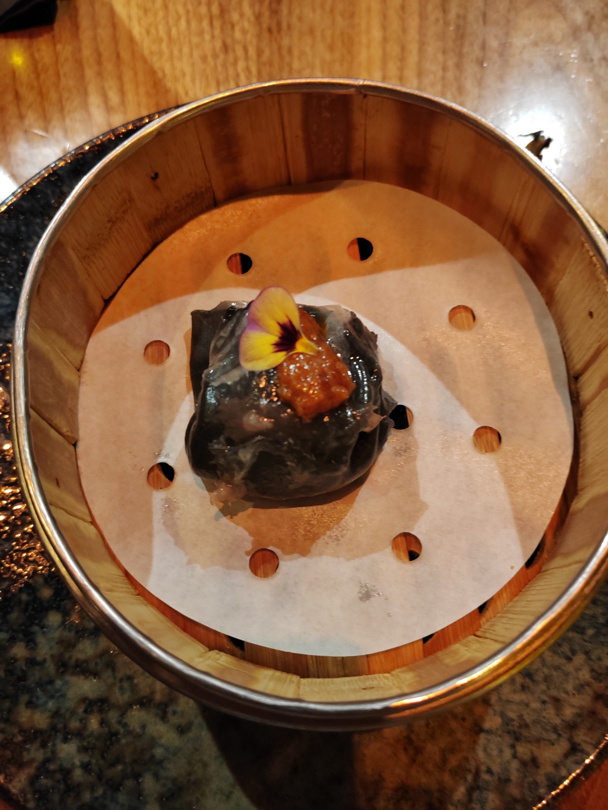 El menú arranca con un tartar de calamar infusionado en soja. Es una entrada sobria que funciona: en la cocina china saben tratar el producto en crudo, logrando que los matices florales acompañen al calamar sin camuflarlo. Es un buen indicador de lo que viene: platos que respetan la materia pero jugando con ella.